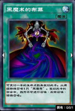 幕布,支付一半生命直接从牌组里拉黑魔导,但是自肃副作用较大。黑魔导构筑组件之一,集快速拉黑魔导,大量削血触发墓封/凡人的优质卡牌。目前只有潘多拉40级一张,曾经的活动给一张以外没有其他方式获得,因此不想肝的萌新可以兑换一张幕布来玩黑魔导。