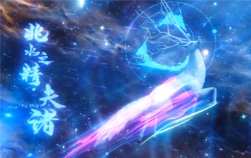 最后漂亮的夫诸便踏着星空漫步走来了,并且腾空一跃,此为:北水之精夫诸。