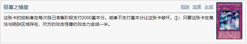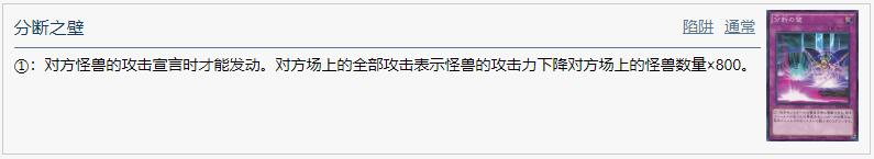 同样是降低对手攻击力,此卡相比银幕而言,是一张永续的降低攻击卡。也是非常多玩家乐意加入卡组的坑之一,但目前环境下,攻宣阶段的发动显得‘有点迟’了,要么不能再攻宣期间发动,要么在进入战阶前就被对手破坏或弹回手牌。