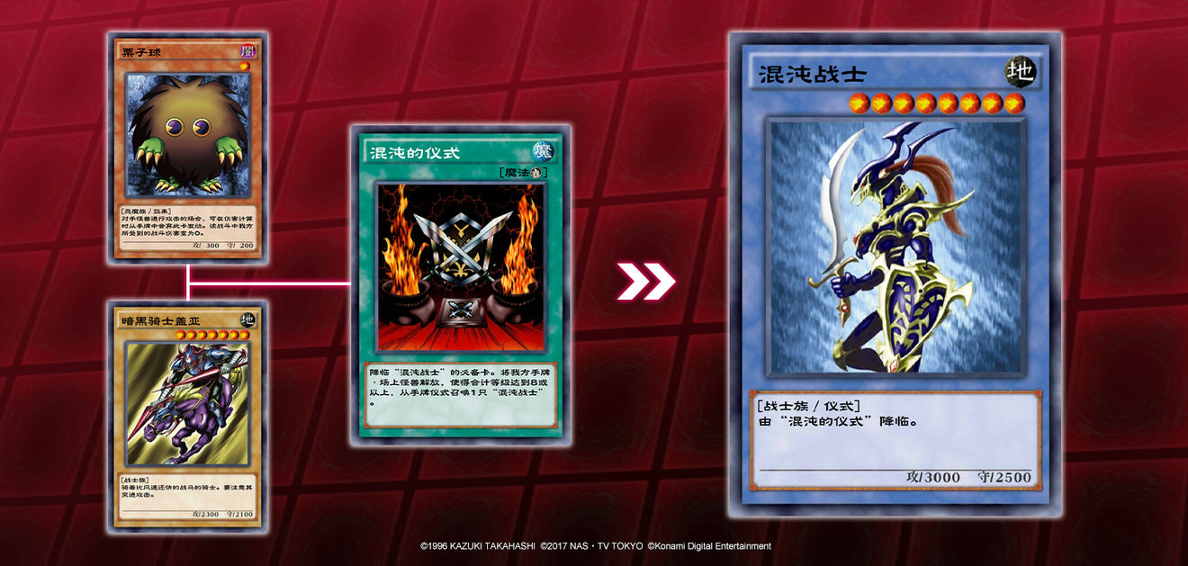 以仪式怪兽混沌战士为例,它需要通过仪式魔法混沌的仪式的效果,把等级合计为8以上的怪兽解放来特殊召唤。例如,当自己手牌和场上集齐等级7的暗黑骑士盖亚和等级1的栗子球时,发动混沌的仪式并将满足等级要求的怪兽解放即可从手牌将一只混沌战士仪式召唤到场上。