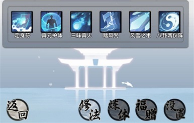 定身符+真元护体+三昧真火+踏风咒+风雪之术+八卦两仪阵