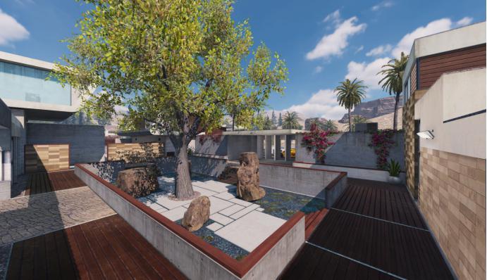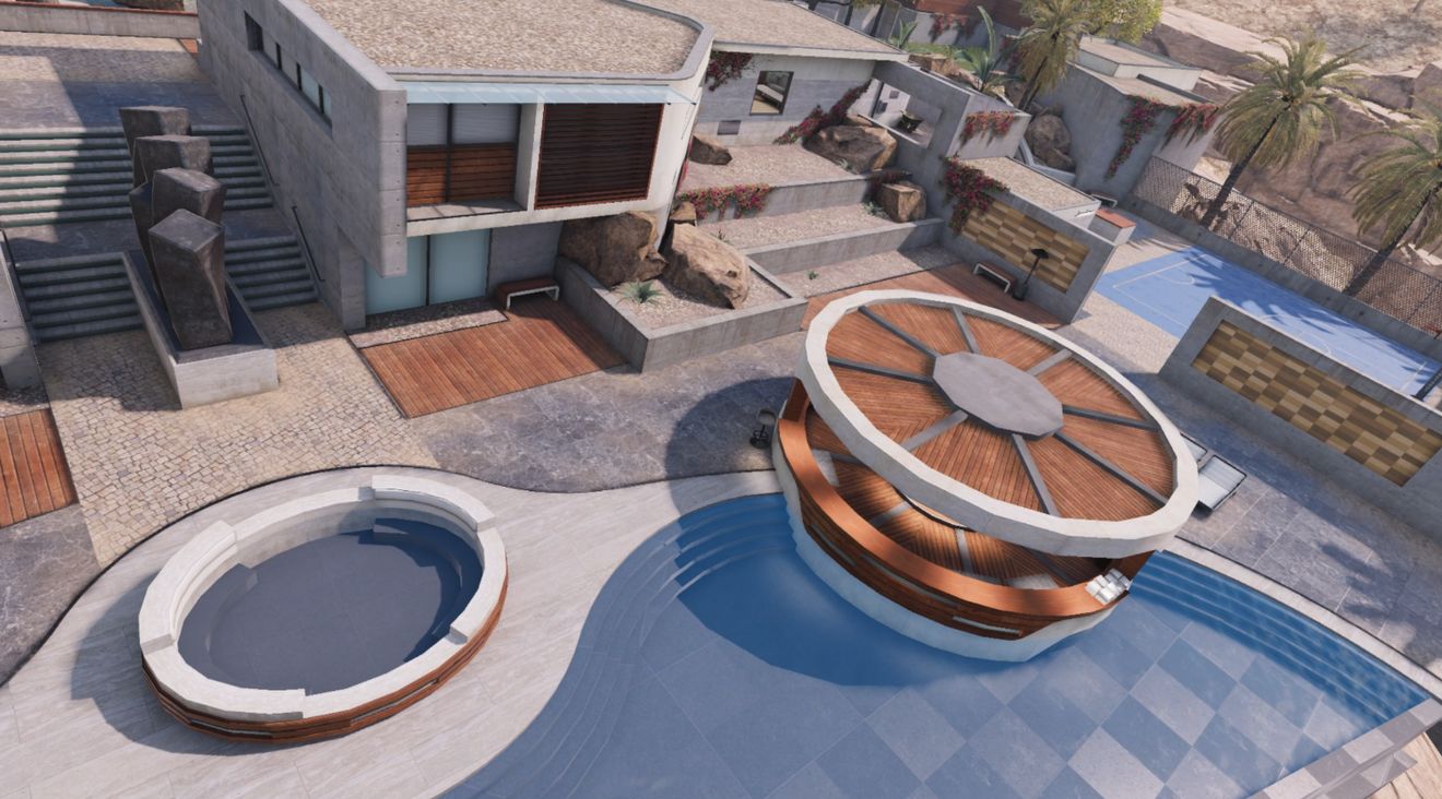 点位三:游泳池区也是我们可以利用的位置之一,无论是小温泉还是游泳池都是注满水的,这时战士们可以趴在水中等待敌人从身边经过的时候再冒出来突袭。由于视野死角的关系,敌方完全看不到其中的情况,因此给了战士们许多的机会。