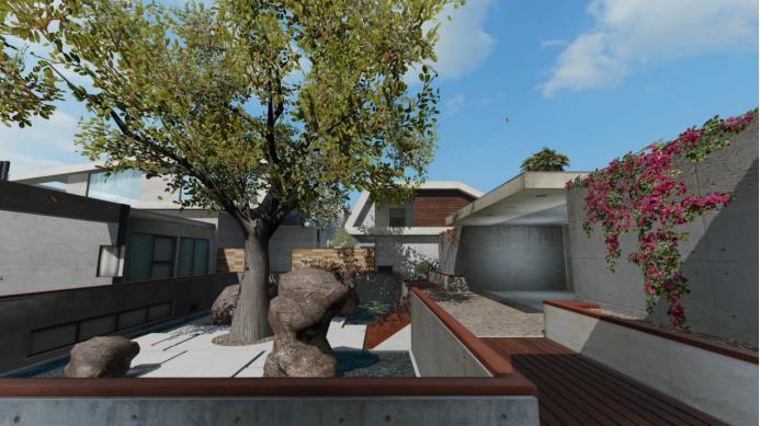点位一:在山景别墅的中场区域是一个小花园,它的四周是长方形的通道,不论是防守还是进攻方都可以通过此地,去往不同的区域。这时便需要注意每个敌人将会出现的出口,因这个区域是一个极易交火的区域,所以战士可以准备一颗手雷给对方一个惊喜。