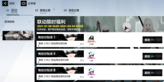 对于A2,小编建议先氪一个联动支援礼包获得10角色碎片,随后通过兑换碎片、抽2只A2即可将其升阶到SSS级。而由于9S是登录赠送、2B无法白嫖,因此想要这两者直接去抽即可。