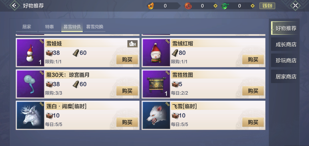 消耗暮雪铃铛和暮雪礼盒可以兑换暮雪节限定冰雪系列家具和雪人挂件。