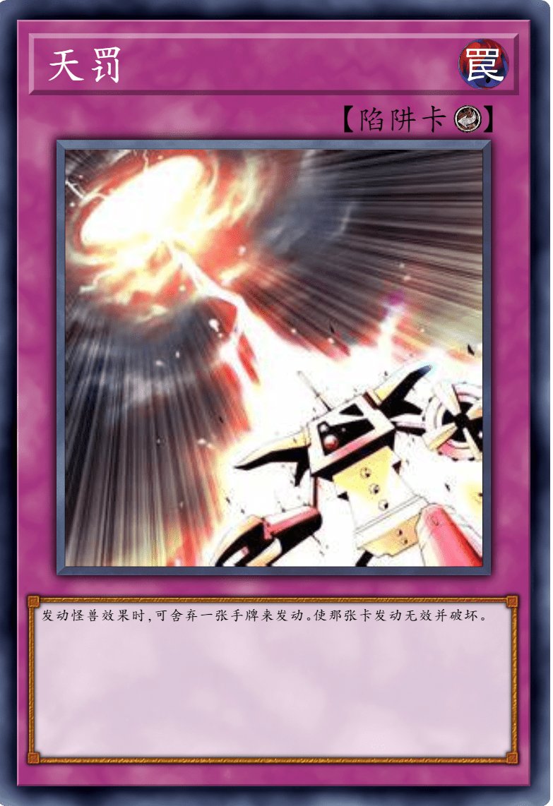 天罚可以无效怪兽效果,非常好用,比如对面的创世龙骑士或者弧光勇烈龙想拉大哥的时候打断,心态会出现一些变化,甚至可以无效从手牌发动的栗子小球,出其不意;丢弃手牌的效果也可以利用,堆墓龙族大哥,使用的时候也要注意保留一张手牌。