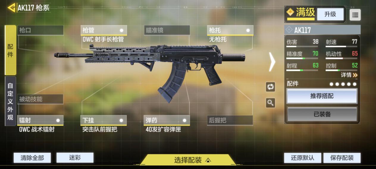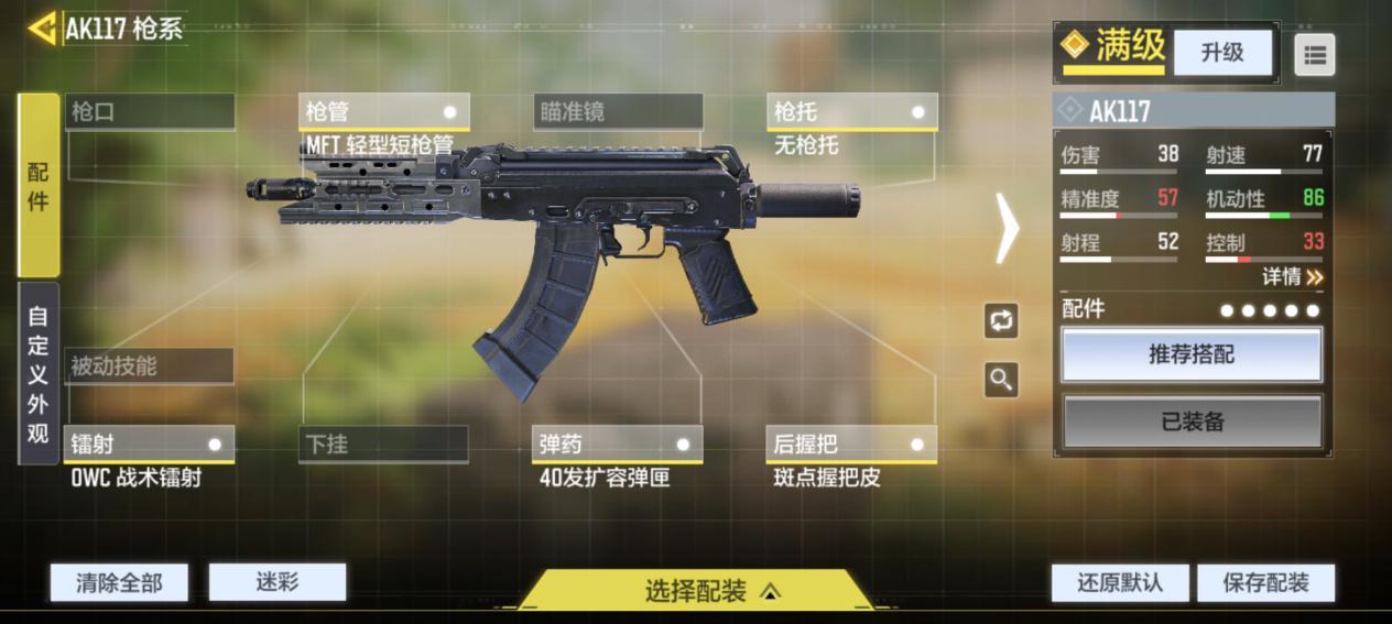 简单总结下,AK117可以概括为:TTK长,射程短,机动性高。为了扬长避短,发挥出更强的战斗力,接下来说说AK117的枪匠改装。
