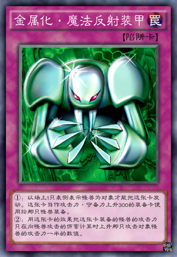 说明:由于伤害计算的时点在攻击宣言之后,改变攻击力守备力的伤判坑天然就具有其他坑没有的优势,尤其是在面对变更表示形式的坑时。一旦对方选择不发动,主动权就掌握在我方的手里。在次世代卡组的实战中,在确认对方大概率没有盖镜壁后(一般在当前回合或之前回合用其他怪去试),次世代搜索员对比自身攻击略高的怪进行攻击宣言时,对方一般会犹豫是否将其转防因为它没有被特意转防击破的价值(因为遗言拉怪)。一旦对方不发动等到我方发动魔法反射装甲便可以解掉对方那只怪且来不及连锁非伤判坑。因此个人认为,对于缺少镜壁的玩家,投入1-2张魔化反射装甲是有不错的性价比的(国际服早期的热门陷阱了)。