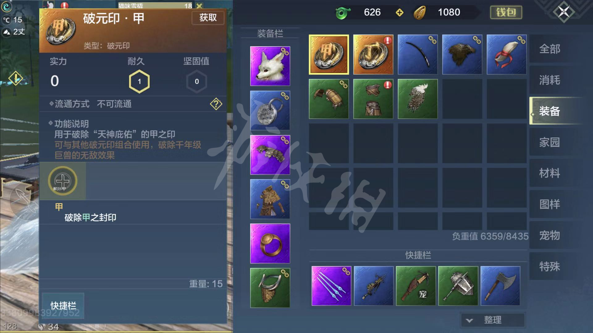 我们获得破元印之后在背包中点击放置快捷栏,我们在装备快捷栏中即可切换破元印使用。