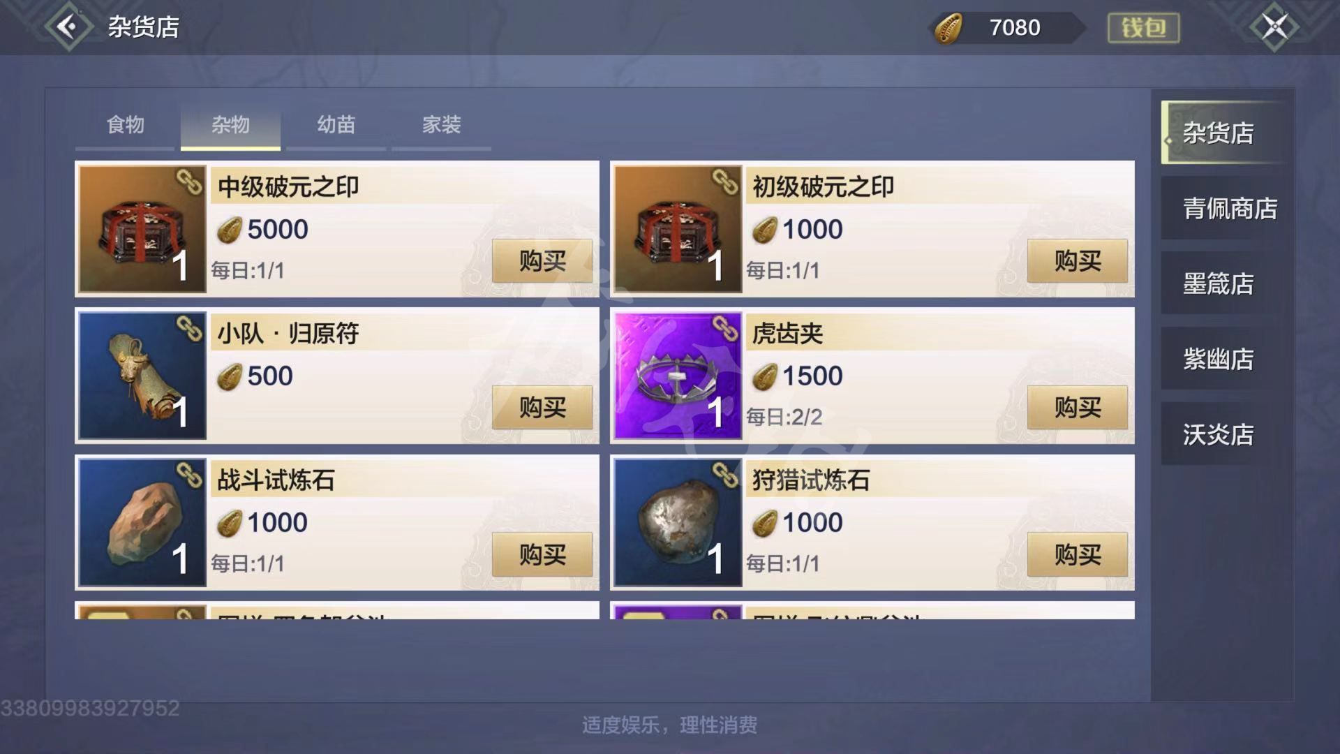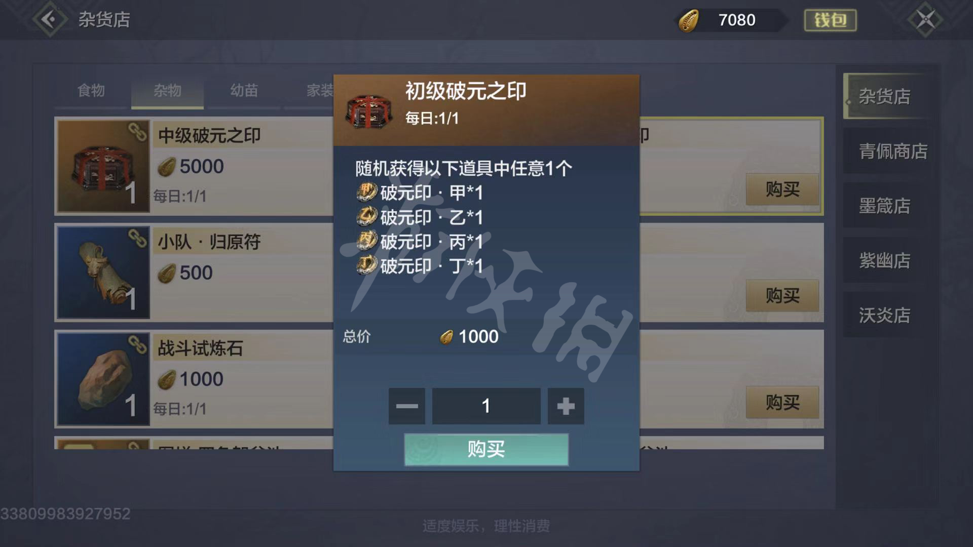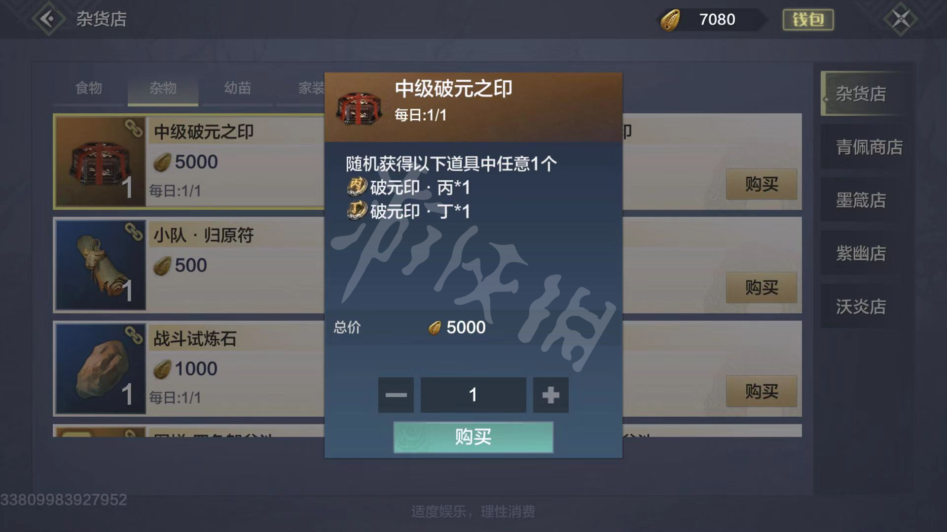 在游戏中的杂货店大家可以购买到初级破元之印和中级破元之印包裹。