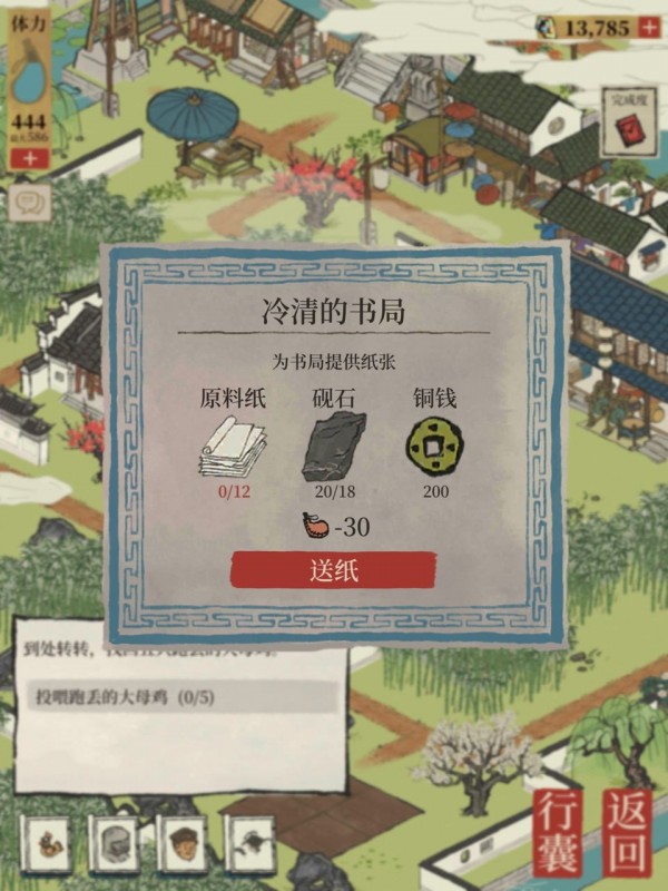 兑换需要:原料纸*12,砚石*18,铜钱*200,体力30,两个书局,所以需要两份。