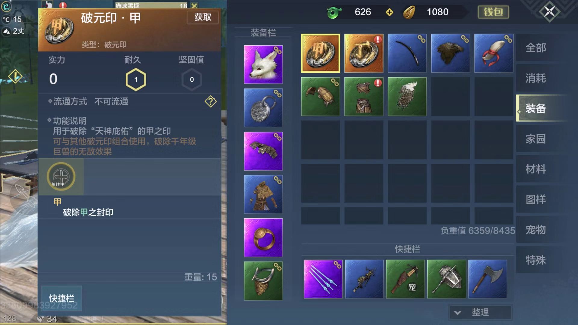 当打一只有封印的一千年巨兽时,异兽身上只有甲封印,此时你只需使用破元印甲即可对异兽造成15%血量伤害。