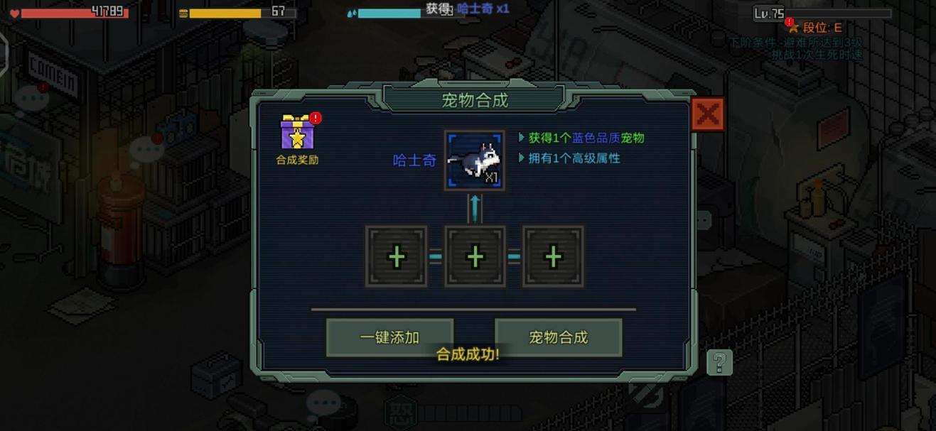 除此之外,三只低级宠物还能进行合成操作,转化为高一个品质的宠物。譬如我合成了三只哈士奇,则会获得一只蓝色品质的哈士奇。