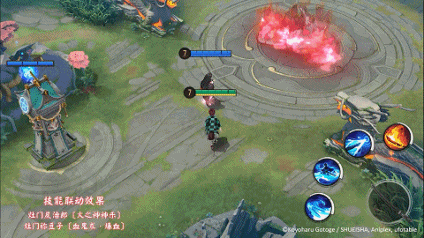 联动效果:若炭治郎在火之神神乐持续期间途径祢豆子技能[血鬼术爆血]的生效范围,则接下来的斩击会附加破甲和减速,并对目标添加灼烧状态,每秒造成一定真实伤害。