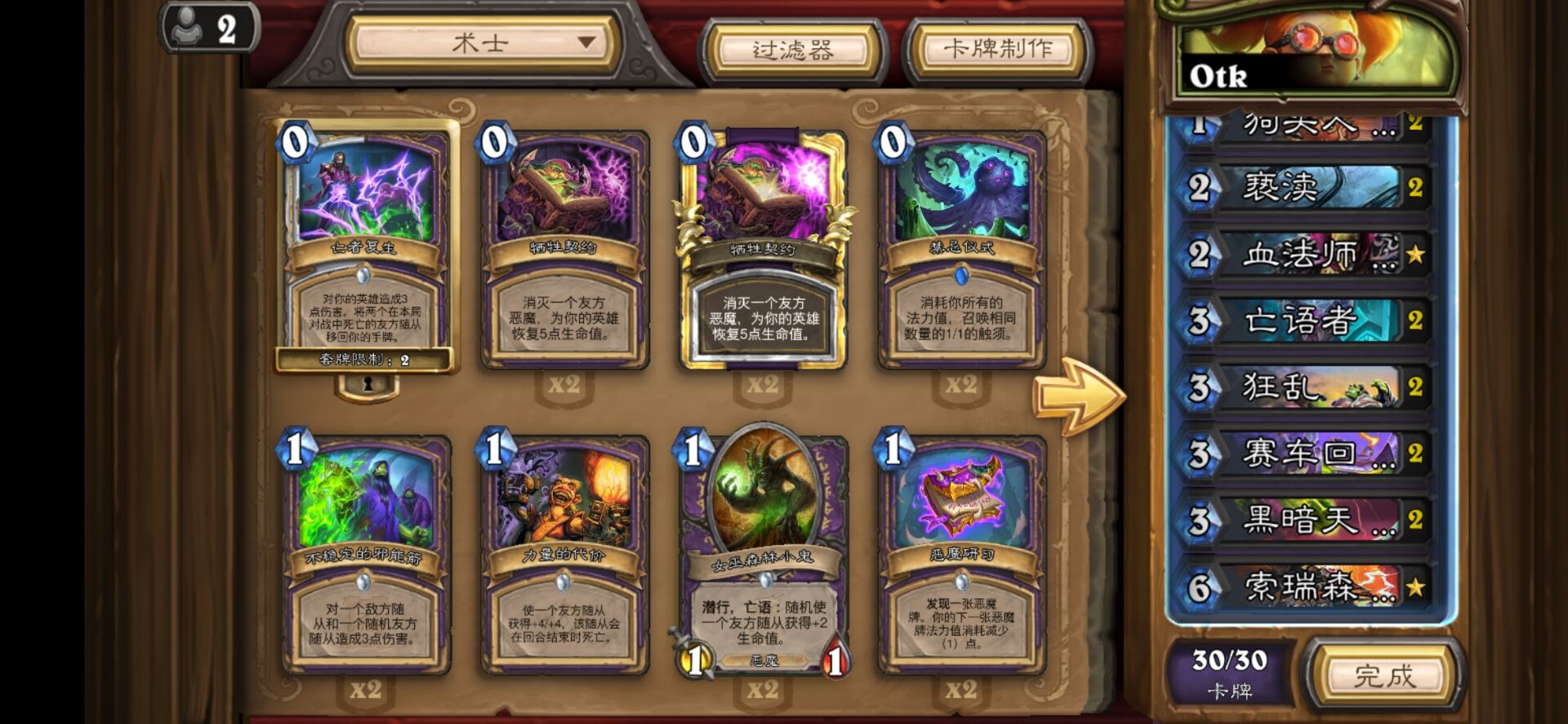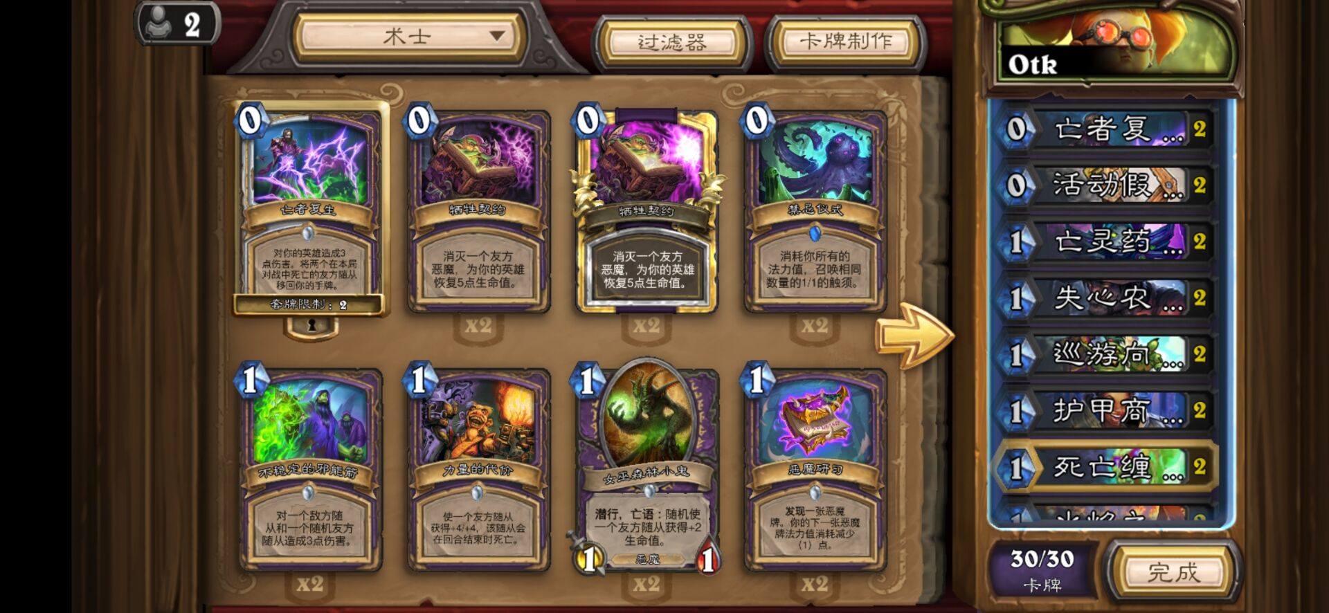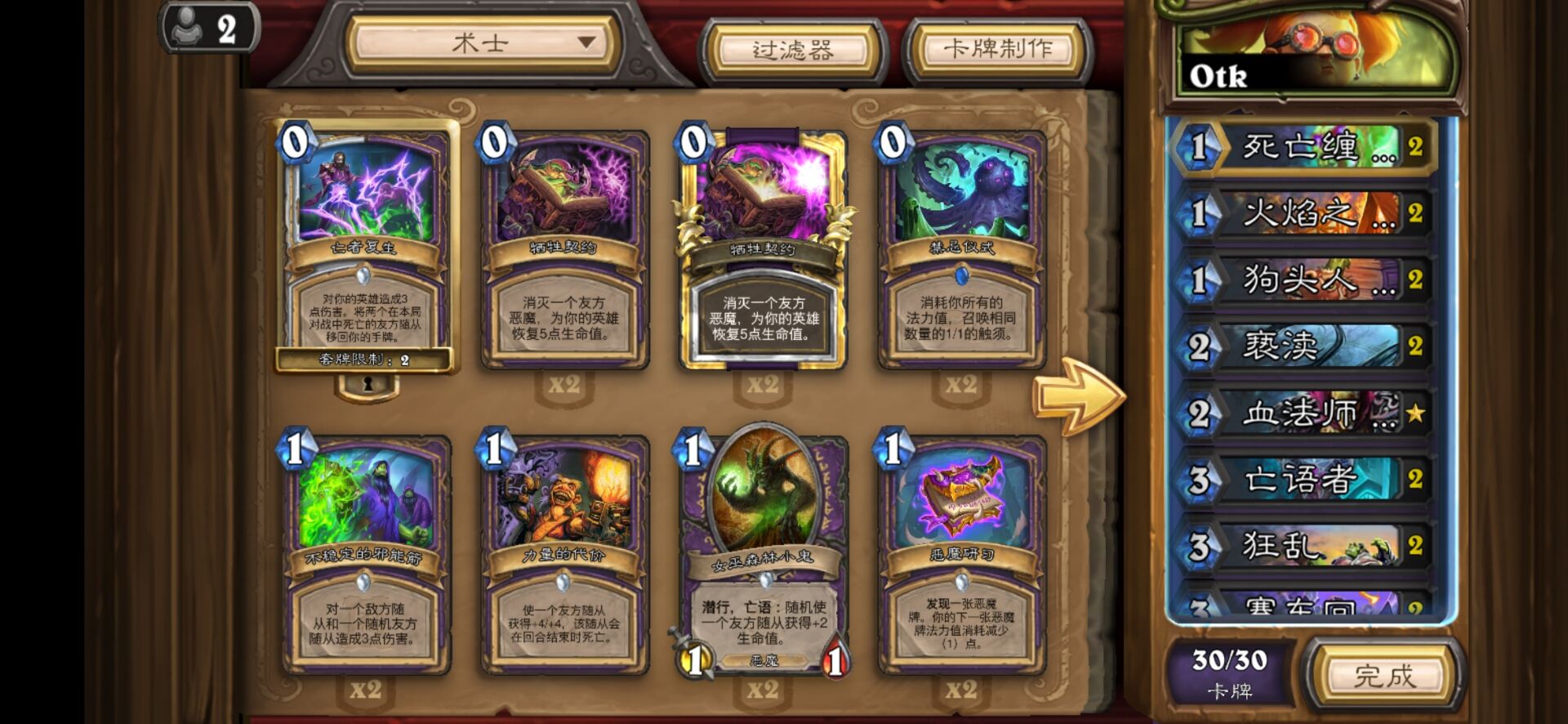 以下是炉石传说玩家你不要过来呀分享的狂乱术卡组: