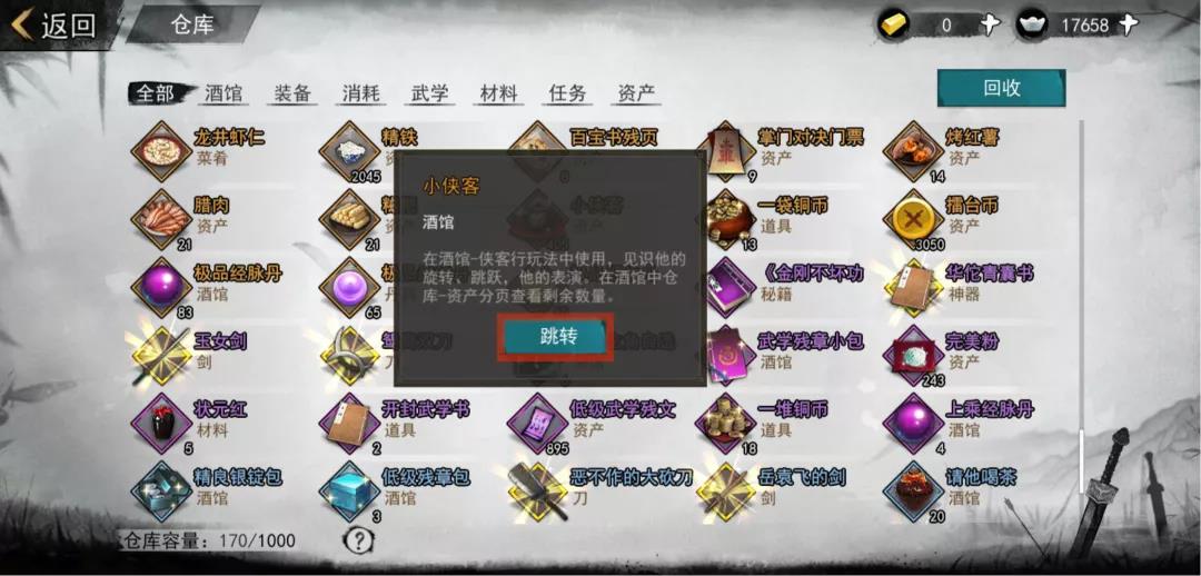 在酒馆界面点击仓库-在仓库中找到小侠客-点击跳转即可进入侠客行活动。