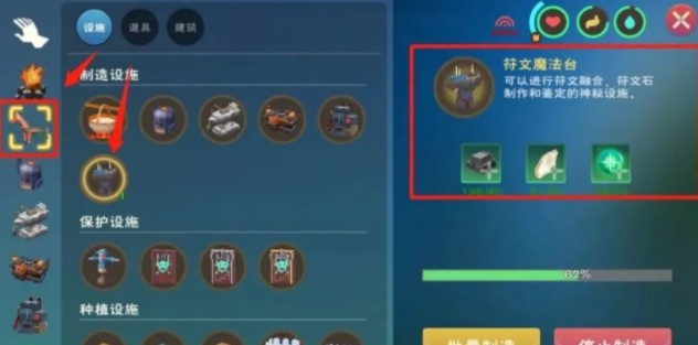 2、制作符文所需材料:40铁锭、20符文原石、10魔晶。