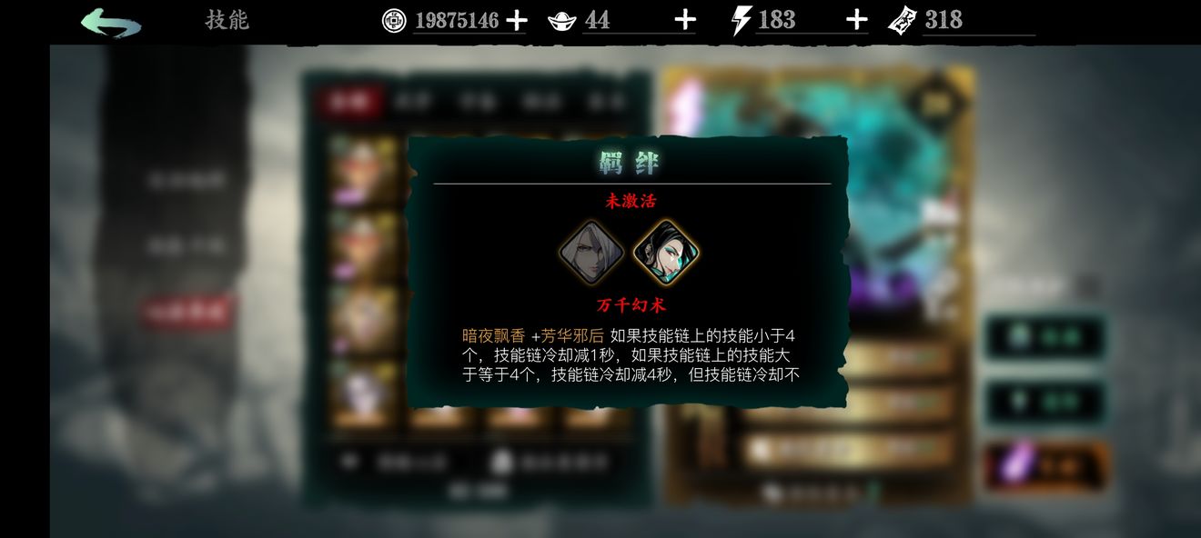 由黑暗无情与白衣留情组成,升华后全伤+150%,前期在装备上所投入资源不多时必带他,因所堆词条不多,初始带他伤害非常可观,免去刮痧烦恼,对萌新来说可以算是t0级别的;后期随着所走流派与所堆词条的不同,再加上悟性的限制,黑白羁绊也就显得可有可无了。