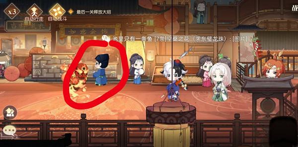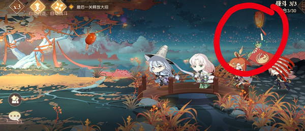 第二个缘分之火灯笼:君心似我心,具体位置是战斗1/3的蓝袍小男人。