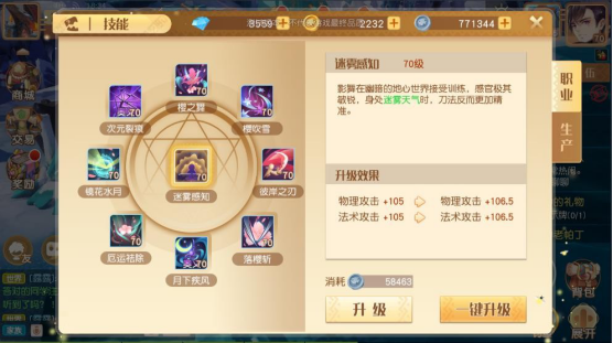 影舞的主要被动技能、初始就带有该技能、每次升级会提升物理、法术攻击(被动效果:身处迷雾天气时可以增加命中。)