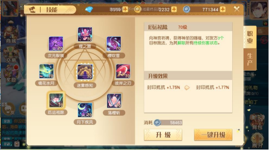 影舞首个辅助技能,为三个友方目标解除所有持续伤害状态。技能升级增加封印抵抗。