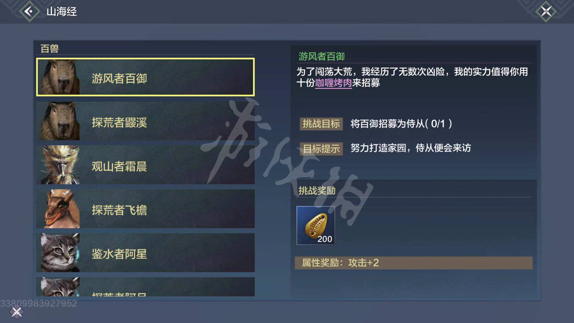 百兽图鉴是所有类目中最难的一个,要招募到图鉴对应的侍从才能解锁。