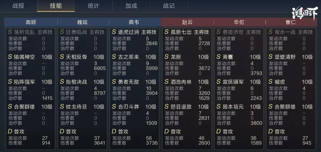 该阵容为双核心进攻阵容,由于高顺自带武技的特点,该阵容在战场中的作用便是进攻。