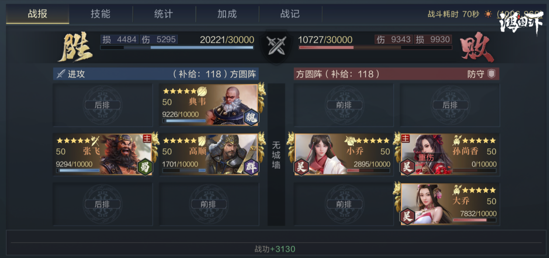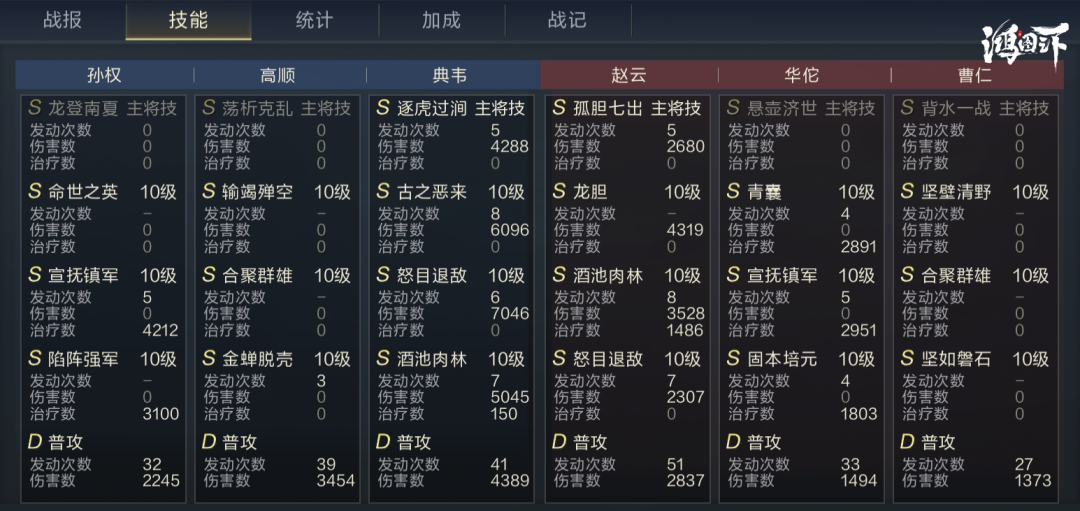 这些可以帮助典韦在前排时的兵力不至于损失过多,由于高顺的属性面板并不能称为优秀,所以在选择技能时我们应当尽量选择不受属性影响的技能,将受属性影响的技能佩戴给面板属性更优秀的孙权,以换取更高的收益。