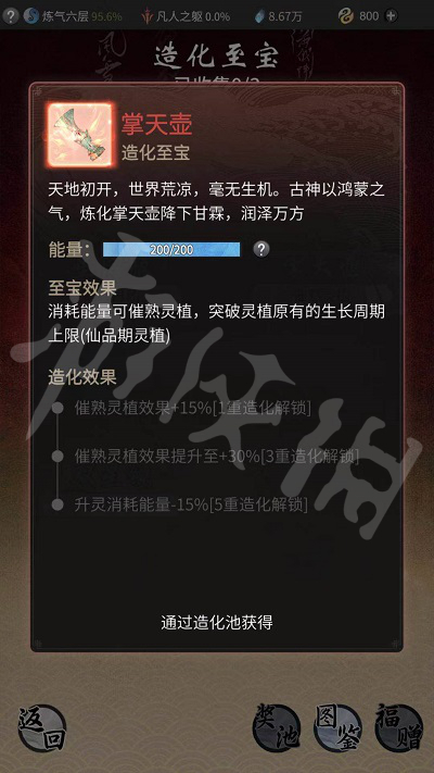 一段时间之后造化池的造化至宝就会刷新一次,需要在抽之后看看是不是想要的造化至宝。