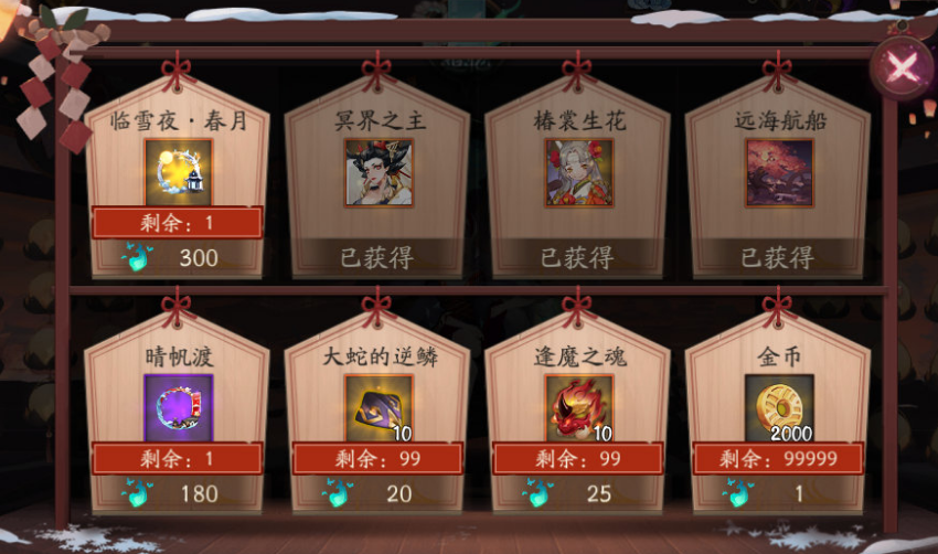 燃尽所有春灯后,可领取神秘奖励春灯焰,阴阳师大人可使用春灯焰兑换稀有道具,包括限定头像框临雪夜春月!