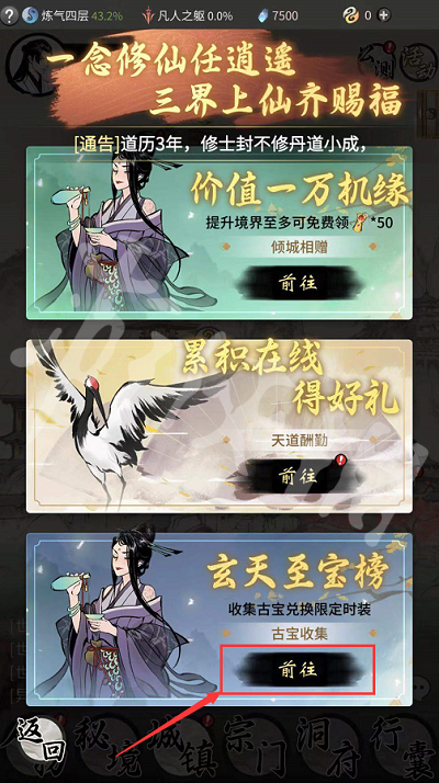 在公测活动界面的最下方找到玄天至宝榜点击前往。