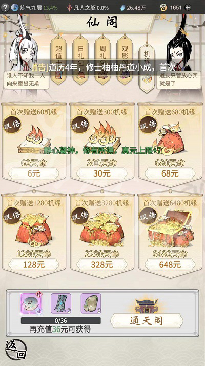 648RMB兑换6480天命,首次充值赠送6480机缘。