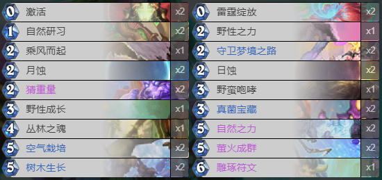 本卡组在传统树人德基础上提速,携带5张低费过牌、7张增费牌、6张5费铺场,基本保证了从4费开始给压力。