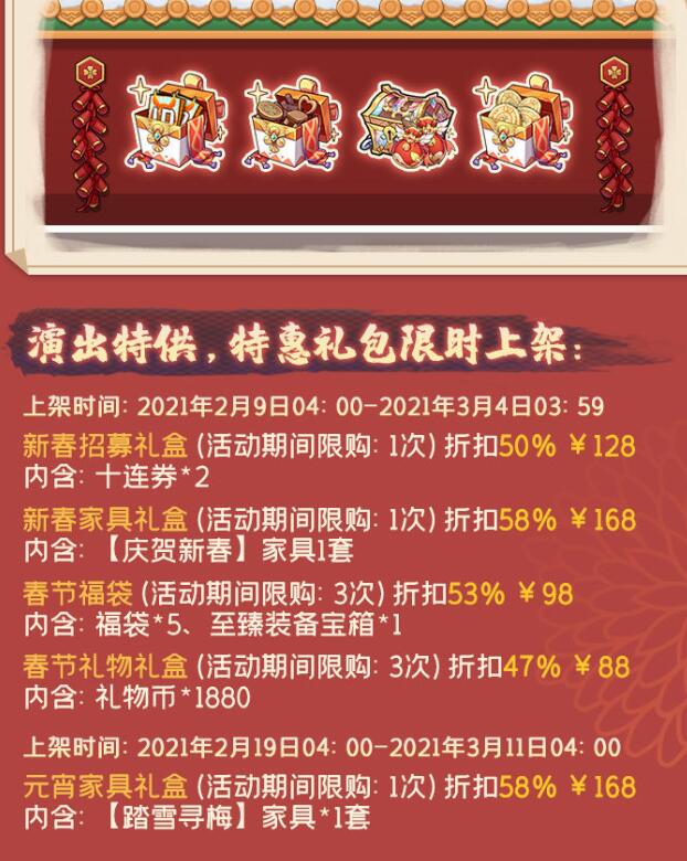 活动时间: 2021年2月11日04: 00- 2021年3月11日03: 59