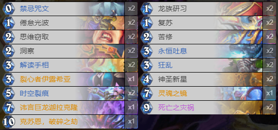 这套牧师最大的特点就是只自带了一张(或者说两张)随从裂心者伊露希亚(与克苏恩)。