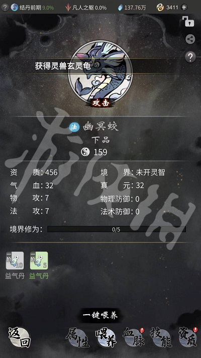 灵兽的修为主要是由境界和资质决定的。当玩家通过灵兽精魂成功兑换灵兽后,我们可以让灵兽在洞府界面的灵兽园中活动。
