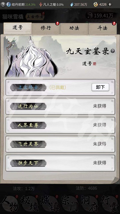 可供我们解锁的道号有隐修居士、大丹师、狩猎者、逆行为仙和人界至尊。