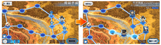 另外,战斗发生时与受到攻击的对象相邻的方格中有从者的情况下,那些从者也会参加战斗,同时回合数也会增长。