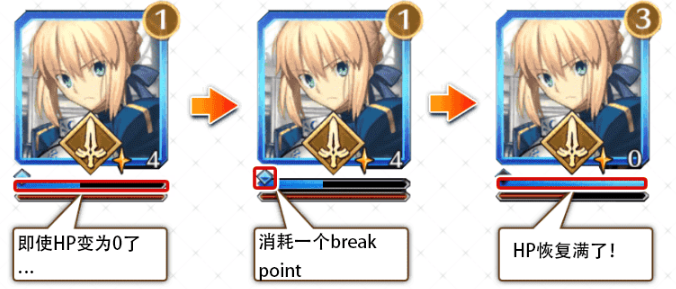 ②break point:从者的HP变成0的话就会消耗1点break point,HP全恢复。break point为0的状态下HP变为0的话,视为被击破,从者从地图撤退。