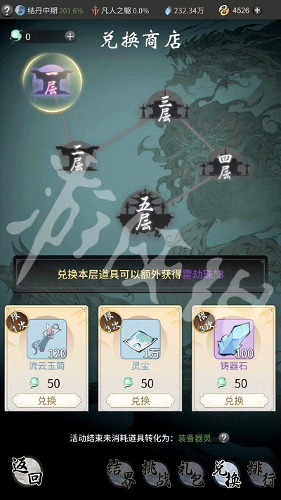 兑换了某一层数的道具,我们还能额外获得一定数量的雷劫珠。