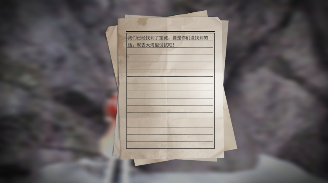 最终攀登上雪山的最高峰,我们发现了装有玻璃碎片的宝箱和一张信条,留信人指引我们可以去大海里寻找璀璨之星。