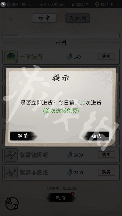 坊市内售出的货物都是限量的,售罄之后需要等待补货之后才能继续购买。