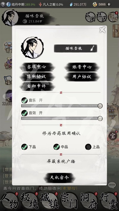 在头像中下拉找到天机密令。