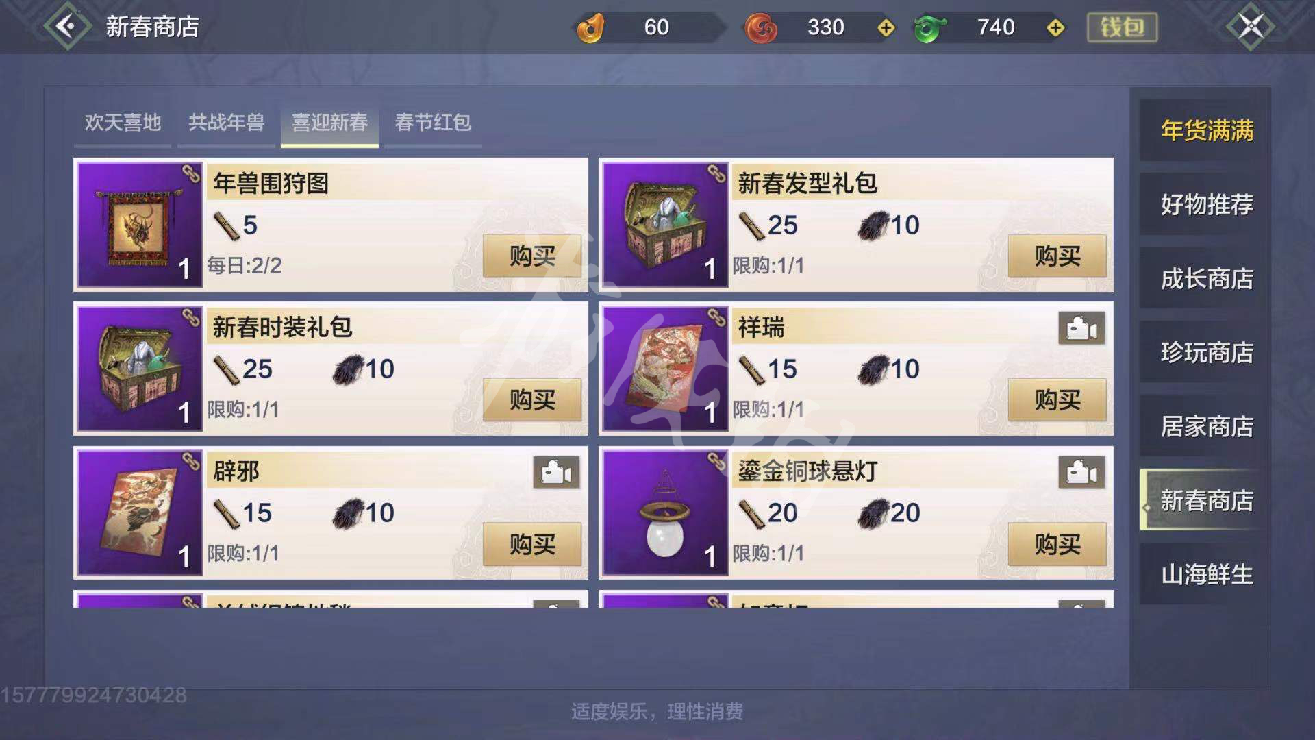 年兽围狩图需要玩家前往新春商店中消耗新春兑换卷兑换获得,每日限量兑换两个。