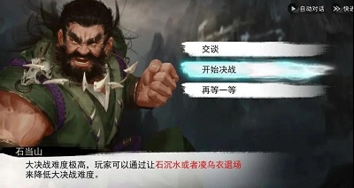 在战斗之前,将会有一个额外选择:若宇文珂与石沉水、凌乌衣的好感度达到99,将可以让她们摆脱石当山的控制(不会成为敌人,仍为你的队友)。若你未选择让她们上场,她们将不会出现在场上。