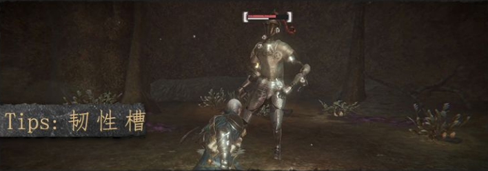 敌人的生命槽下方,有一条白色的韧性槽。攻击敌人,可削减它的韧性槽。韧性槽为0时,敌人将进入虚弱状态,此时接近敌人可执行处决,对敌人造成巨大伤害。若停止攻击敌人,它的韧性槽会逐渐恢复。