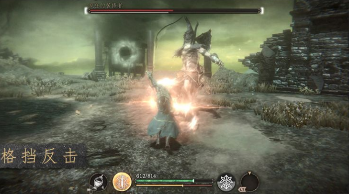 泰伦斯看准敌人的攻击间隙,格挡架开敌人的攻击,然后刺出反击的一剑。因为出其不意,削减敌人韧性槽的效果非常明显。