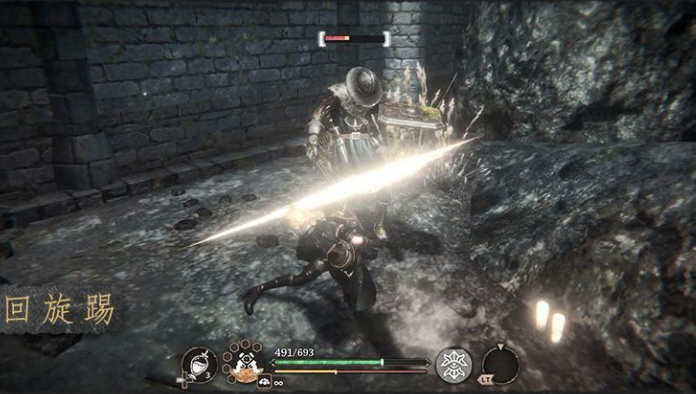 维奥拉的近战招式,突进后使出凌厉的踢击。面对脆弱的远程敌人时,维奥拉可以用回旋踢抢攻,或者在使用火枪战技拉开距离后,用回旋踢衔接,侵近敌人继续进攻。