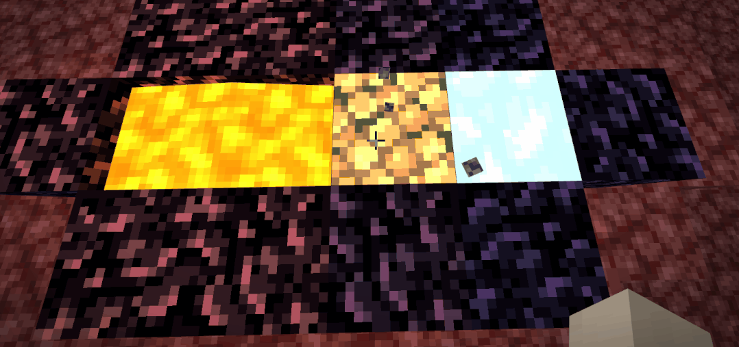 3.制作原理:下界更新后,岩浆在灵魂土上与蓝冰相遇时就会形成玄武岩。而蓝冰很稳定,在下界的恶劣环境里也不会融化凭空消失利用,这个特性我们在下界可以刷石头。