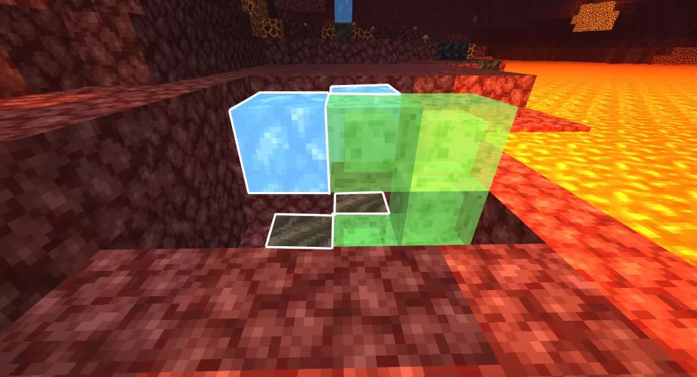 2.在靠岩浆岸的一侧的中部,用5个粘液块搭成一个C字形。